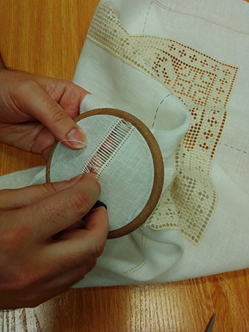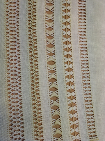 - Ejecución correcta de las técnicas tradicionales: hilos contados, deshilados, calados y bordado libre.
