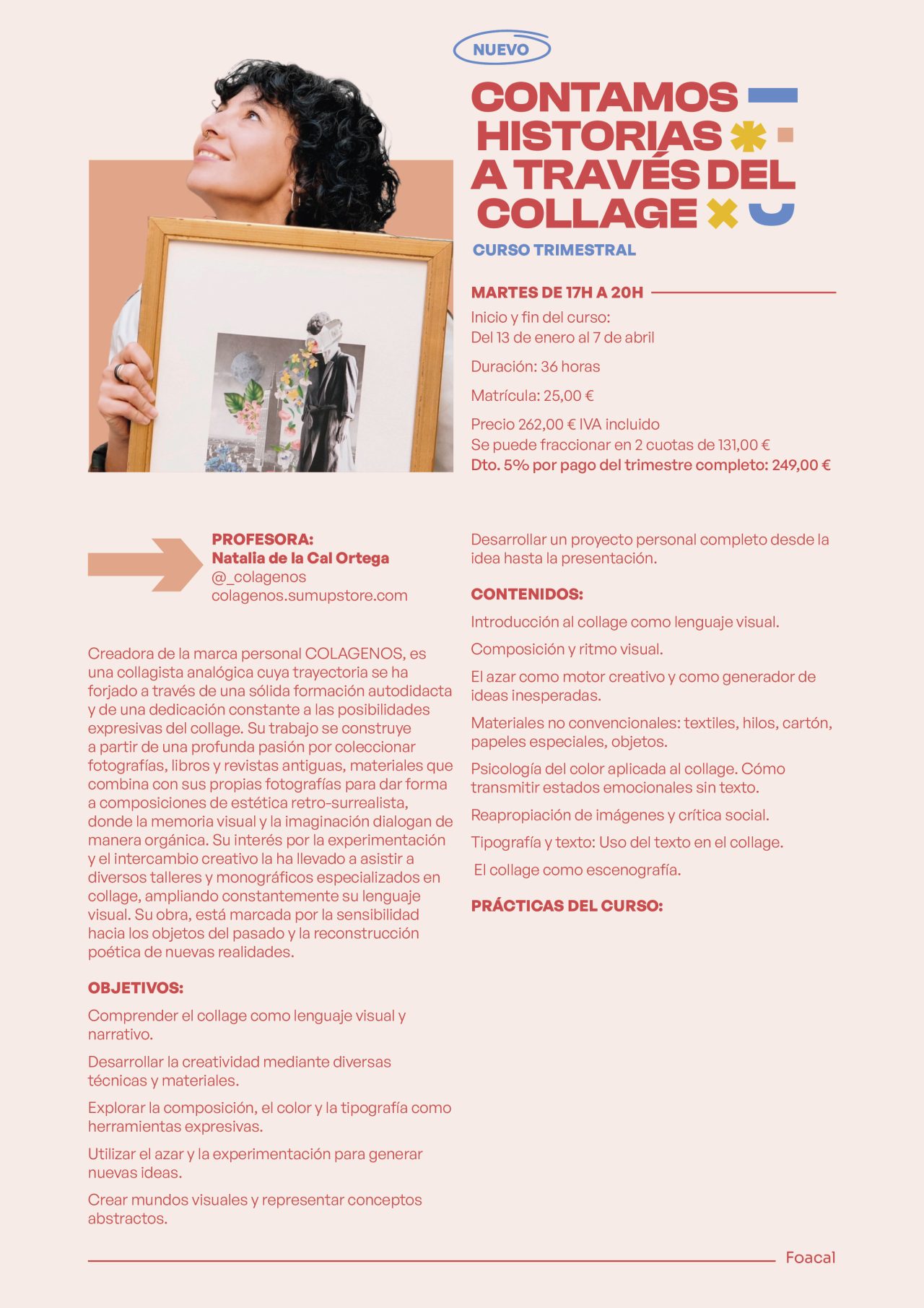 | CUOTA | MATRÍCULA, TRIMESTRE, TRIMESTRE COMPLETO (5% DCTO.), MATRÍCULA+TRIMESTRE, FRACCIONADO EN 2, CUOTA FRACCIONADA+MATRÍCULA, 10% DCTO. SOCIOS/AS FOACAL O ALUMNOS/AS APUNTADOS A 2 CURSOS, TRIMESTRE 10%+MATRÍCULA, PAGO CON 10% FRACCIONADO EN 2 CUOTAS, 10% DCTO. CUOTA+MATRÍCULA |