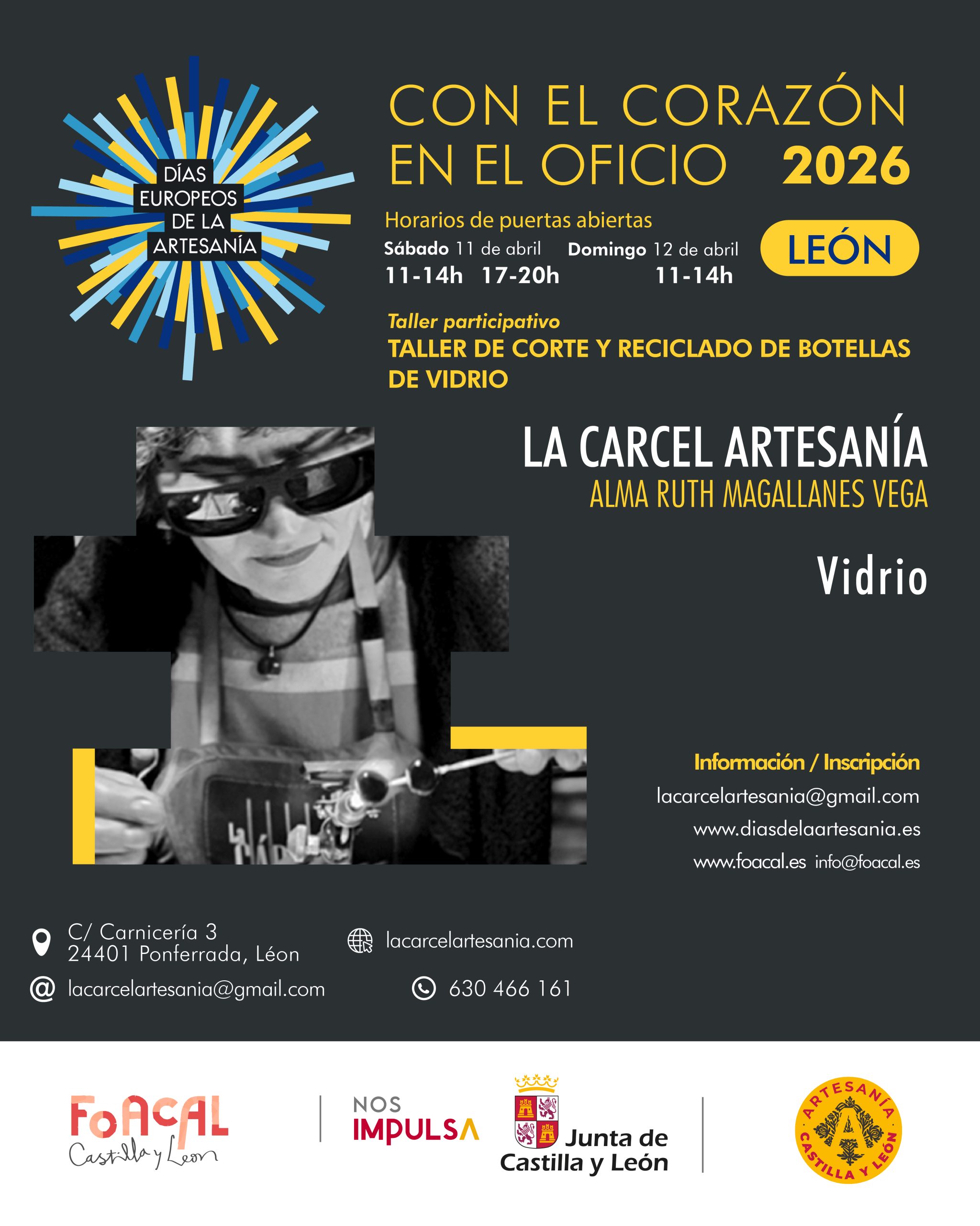 En Ponferrada, el taller La Cárcel Artesanía, dirigido por Alma Ruth Magallanes Vega, ofrecerá un taller participativo de corte y reciclado de botellas de vidrio, una propuesta que permitirá conocer de cerca el trabajo artesanal con este material y sus posibilidades de reutilización y transformación. La inscripción puede realizarse a través del teléfono 630 466 161.