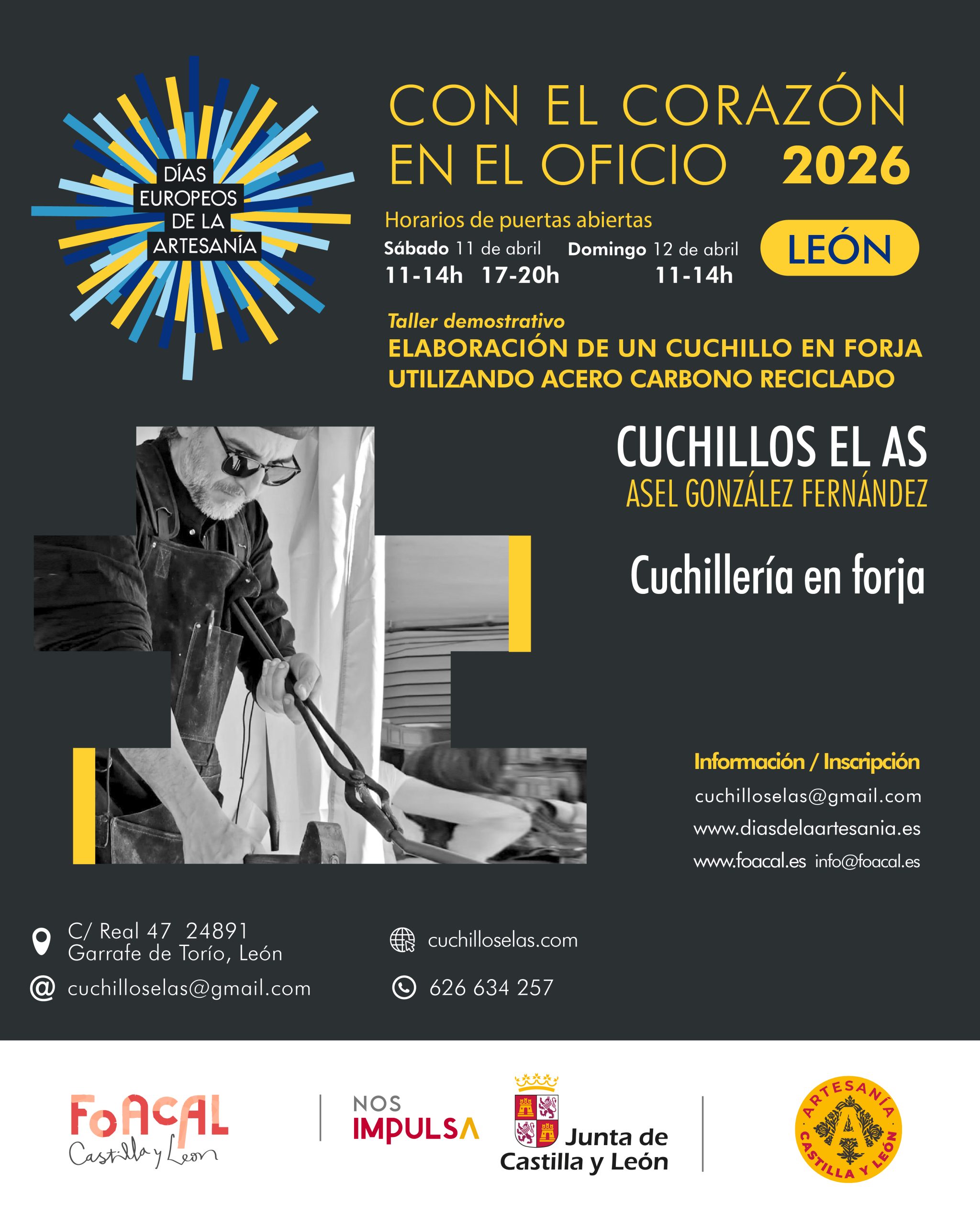 Por su parte, en Garrafe de Torío, Cuchillos El As, dirigido por Asel González Fernández, desarrollará un taller demostrativo centrado en la elaboración de un cuchillo en forja utilizando acero al carbono reciclado, una actividad que permitirá descubrir uno de los oficios más ligados a la transformación manual del metal y al trabajo de precisión. Quienes deseen participar pueden inscribirse en el 626 634 257.