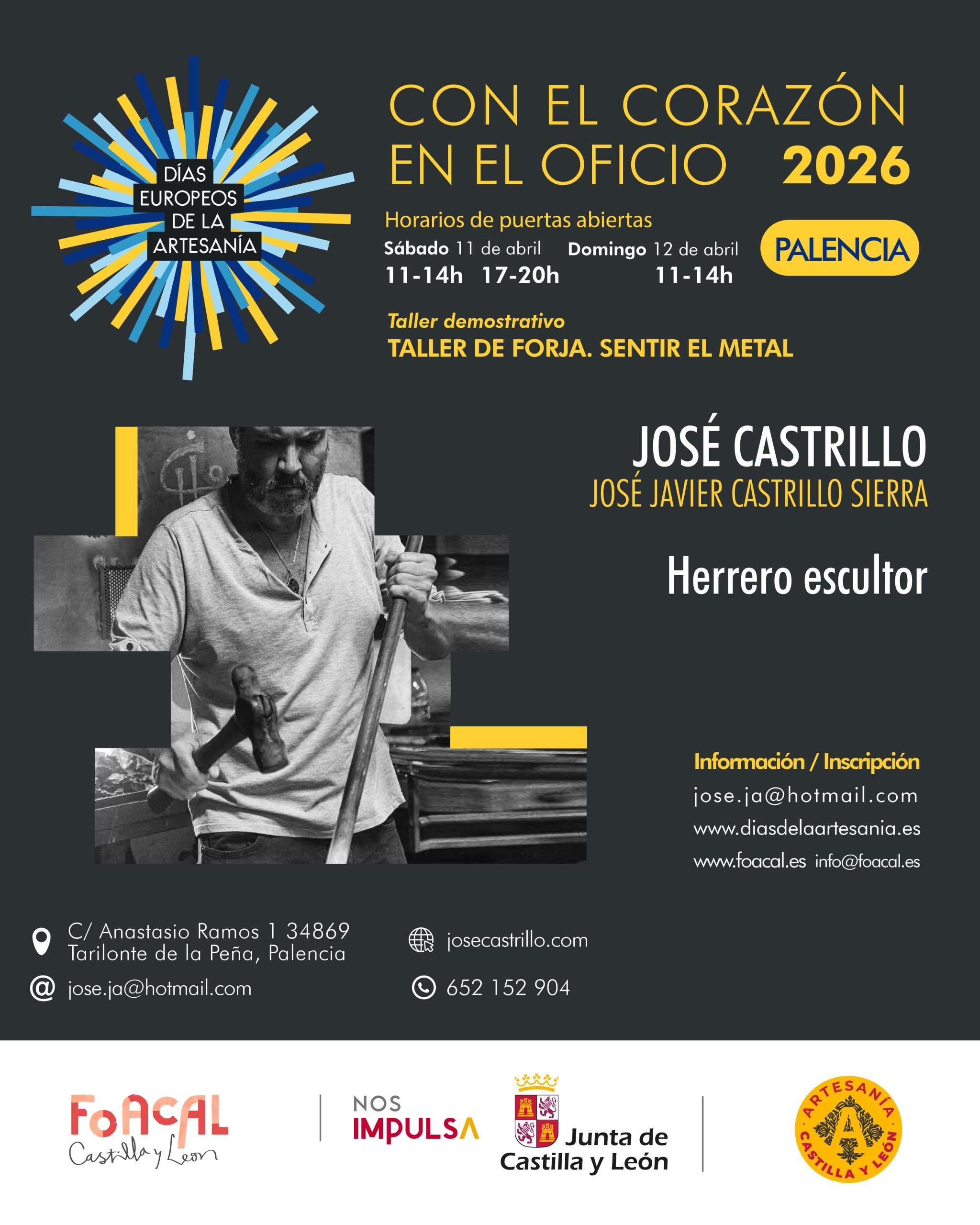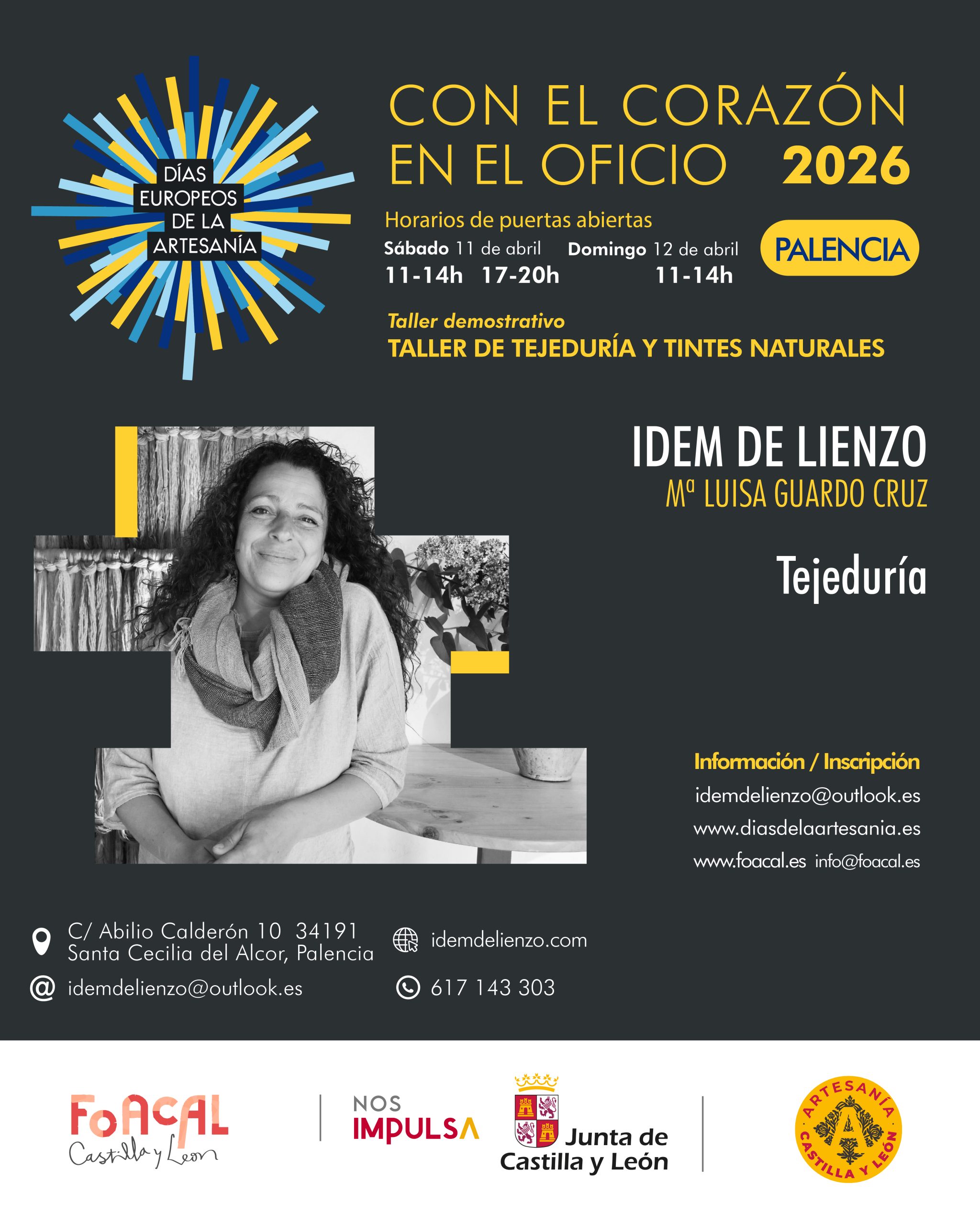 La Federación de Organizaciones Artesanas de Castilla y León (FOACAL), con el apoyo y financiación de la Junta de Castilla y León, promueve una nueva edición de los Días Europeos de la Artesanía en la provincia de Palencia con la participación de cuatro talleres artesanos que abrirán sus puertas al público el sábado 11 y el domingo 12 de abril. La programación se enmarca en el lema «Con el corazón en el oficio» y permitirá acercarse al trabajo real de los oficios en distintos puntos del territorio palentino.