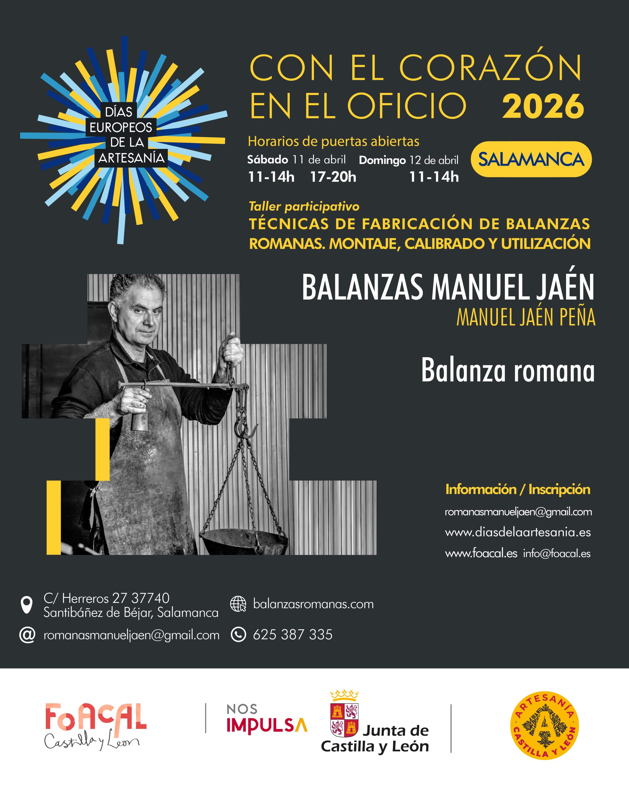 Por su parte, en Santibáñez de Béjar, Balanzas Manuel Jaén, dirigido por Manuel Jaén Peña, desarrollará un taller participativo sobre técnicas de fabricación de balanzas romanas, montaje, calibrado y utilización, una propuesta vinculada a un oficio singular que conserva procedimientos tradicionales poco frecuentes. Quienes deseen participar pueden inscribirse en el 625 387 335.